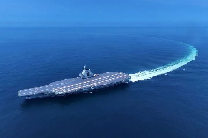 2024年5月7日,我国第一艘国产电磁弹射航母福建舰在首航试验中(无人机照片)。新华社发(丁子羽摄)