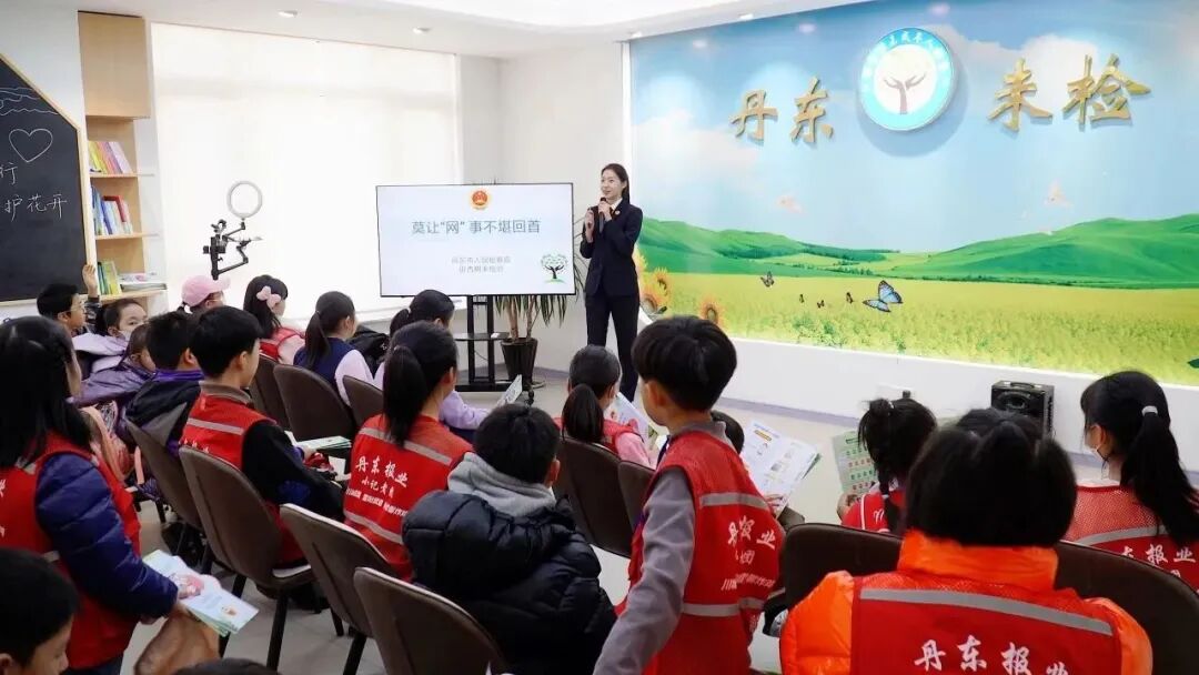来到办案区的法治教育厅,小记者们排排坐好,和检察官共同回顾了丹东未检的一些精彩瞬间。检察官还结合新实施的《未成年人网络保护条例》,为孩子们讲授了一场关于网络保护的法治课,以案释法教会孩子们面对网络诈骗、网络欺凌时如何保护自己,以及如何识别网络信息、拒绝网络沉迷。小记者们纷纷表示会不断增强网络素养,提升法治意识和自我保护意识。