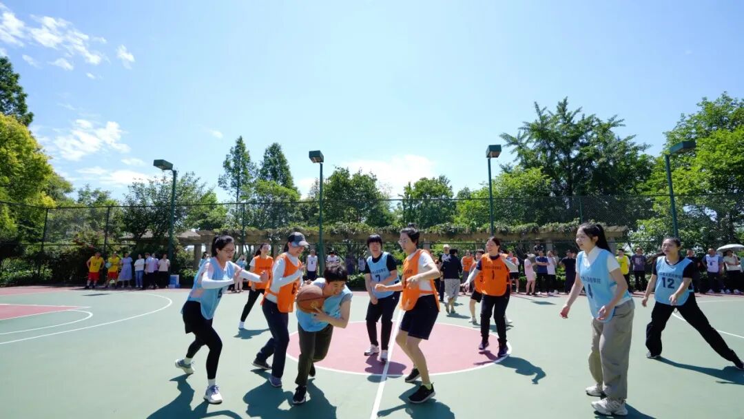 “传球!”一组队员瞅准防守空档,将球传给杜学东组长。随即,一个漂亮的起跳投篮,3分!一组赢得开门红!二组队员也不示弱,随即利用一个空档,投篮,2分!或利用强壮的身体防守,或利用灵活的身体跑位,或利用身高的优势断球……两组队员“绞杀”在一起。
