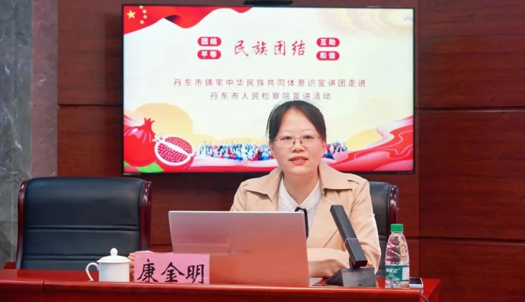 为深入学习贯彻习近平总书记关于加强和改进民族工作的重要思想,切实将铸牢中华民族共同体意识融入检察履职全过程,推动新时代检察工作高质量发展,10月14日,丹东市铸牢中华民族共同体意识宣讲团走进市检察院,为全体检察干警带来一场深刻而生动的专题宣讲。市民宗局副局长付健,市检察院党组成员、政治部主任杨铁明出席活动。