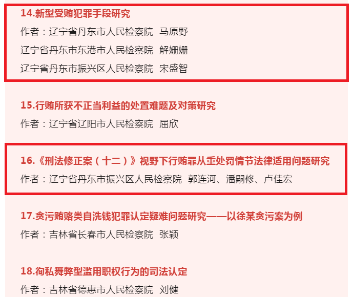 据悉,本次征文活动是为深入学习贯彻习近平法治思想,进一步深化检学研合作,促进职务犯罪检察理论与实践融合发展,由最高人民检察院职务犯罪检察厅联合中国刑法学研究会、《中国刑事法杂志》、人民检察杂志社联合开展。本次活动共收到征文投稿948篇。经过认真审查评阅、学术不端检测,邀请众高校教授评审,并报最高检领导同意,评出优秀论文142篇,其中一等奖15篇、二等奖39篇、三等奖88篇。