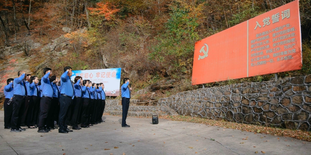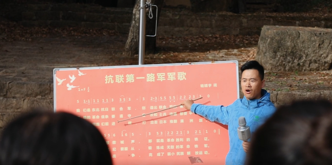 在天桥沟抗联密营旧址检察干警学唱杨靖宇抗联红歌并重温入党誓词。