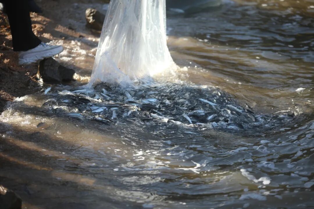 “增殖放流活动现在开始!”随着一声令下,124.5千克雅罗鱼苗涌入鸭绿江水域,为鸭绿江流域生态系统注入新的活力。