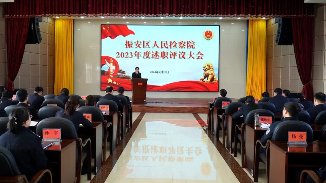 为进一步总结2023年检察工作,切实激发检察人员干事创业热情和履职担当能力,2月26日,丹东市振安区人民检察院召开2023年度述职评议大会,院领导班子听取各部门、各条线及检察官述职报告。