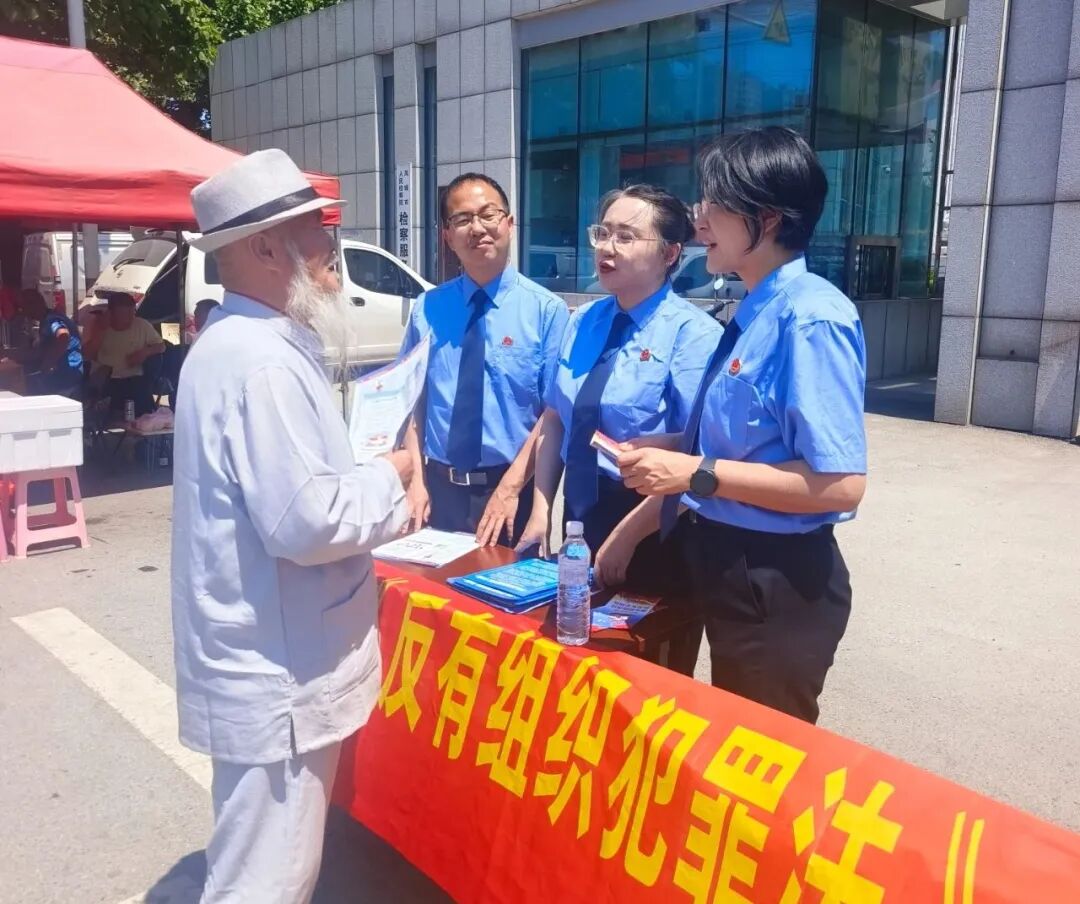 在热闹的庙会现场,检察官们拉起条幅“摆摊”宣传,向过往市民发放扫黑除恶斗争明白卡、反有组织犯罪法宣传手册、扫黑除恶斗争常态化宣传单、宣传袋等资料300余份。现场为群众讲解扫黑除恶斗争的重要性,如何识别和防范黑恶势力等扫黑除恶斗争的具体问题,教育引导广大群众积极参与到常态化扫黑除恶斗争中来,勇于检举、揭发并提供各类涉黑涉恶违法犯罪线索,共同维护辖区社会治安稳定。同时,接受群众咨询、现场答疑30余人次,针对群众日常生活中遇到的法律困惑,检察官们都耐心地进行了解答,让人民群众感受到了法律的温暖和力量。