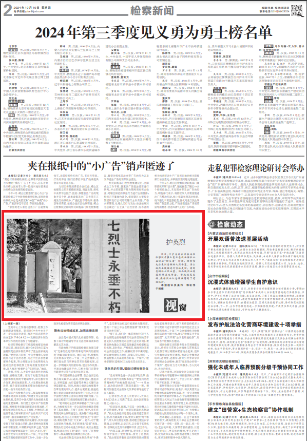 近日,《检察日报》02版刊登“辽宁丹东振安:护英烈”一文,内容如下: