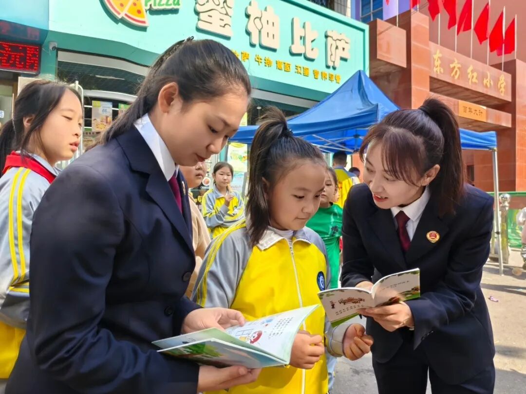 为进一步提高儿童、青少年的安全消费意识和能力,检察人员“巧借”学生放学高峰期,深入学校门口“蹲点”开展食品安全普法宣传活动。