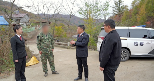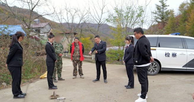 2024年10月21日,宽甸县检察院与元宝区法院、“益心为公”志愿者共同来到时某某所在村庄,对时某某劳务代偿的情况进行跟进监督。该镇林业站护林员向在场人员出示了时某某的巡山记录手册,并讲述了时某某的日常表现。“判决生效后时某某第一时间到林业站报到,协助我们一同巡山,一个月以来制止携带油锯上山欲砍伐林木的可疑人员2次、发现弹簧兽夹1个并上交到了林业站。”护林员说。