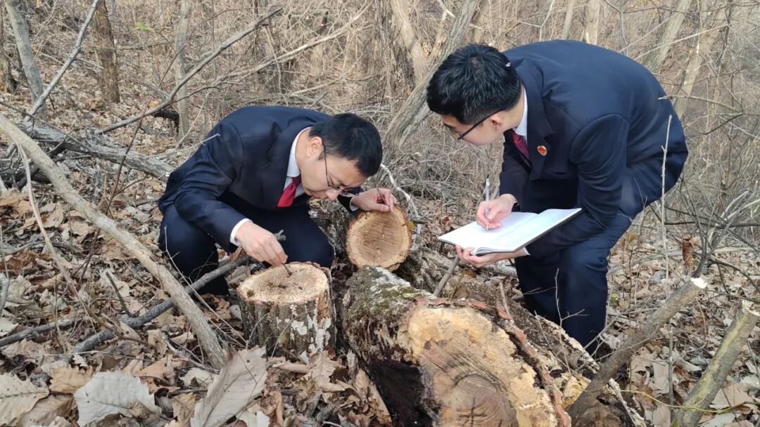 图②:2024年10月,辽宁省凤城市检察院检察官现场勘查该地柞树遭受虫害情况。