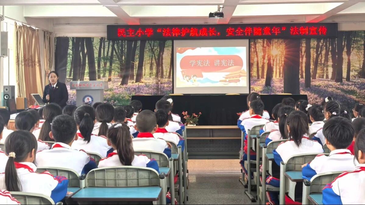 凤城市人民检察院检察干警高菲,走进民主小学开展以 “法律护航成长,安全伴随童年”为主题的宪法宣传活动,为同学们带来了一场生动有趣、干货满满的宪法课堂。她从同学们熟悉的校园生活、家庭场景入手,用通俗易懂的语言、鲜活生动的案例,结合普法动画深入浅出地阐释了宪法的核心概念。告诉同学们,宪法作为国家的根本大法,就像一棵大树的根基,支撑着整个国家的法律体系,也像一位“隐形守护者”,时刻保障着大家的成长权益。此次宪法宣传活动,将严肃的法律知识与小学生的认知特点巧妙结合。同学们纷纷表示,通过这堂课,不仅知道了宪法的重要性,还学会了如何在生活中遵守宪法、运用宪法,真切感受到宪法并非遥不可及,而是与每个人的生活息息相关。