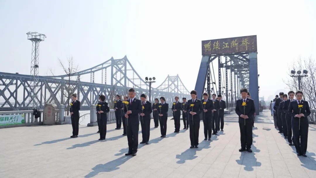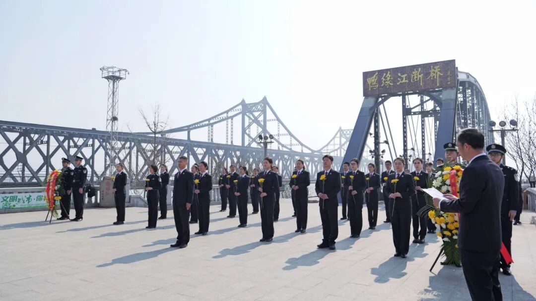 2025年,正值中国人民志愿军抗美援朝出国作战75周年,4月3日,清明节前夕,丹东市人民检察院组织30余名党员干警前往鸭绿江断桥“为了和平”雕塑前,开展"传承抗美援朝精神,锻造新时代检察铁军"主题祭扫活动。巍峨的雕塑前,检察干警身着制服列队肃立,以庄严仪式缅怀志愿军英烈,赓续红色血脉,汲取奋进力量。院党组成员、政治部主任杨铁明出席活动。