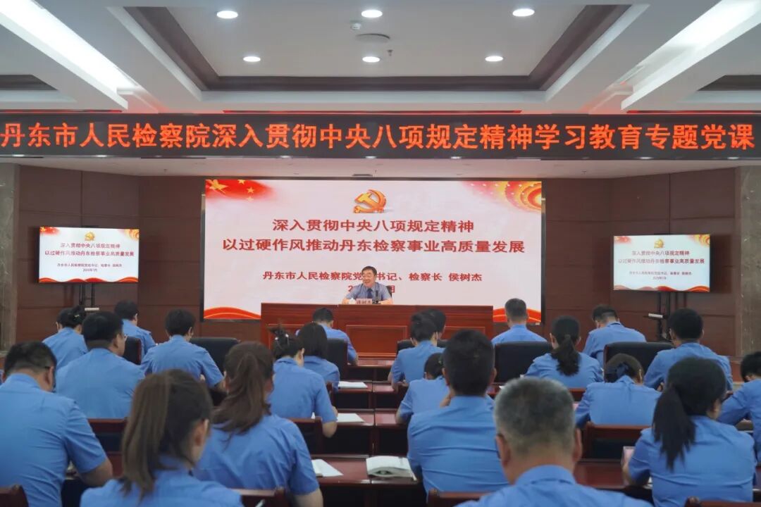 清风润检徽,正气铸忠诚。7月2日,丹东市人民检察院举办深入贯彻中央八项规定精神学习教育专题党课,院党组书记、检察长侯树杰以《深入贯彻中央八项规定精神,以过硬作风推动丹东检察事业高质量发展》为题进行分享交流,进一步从学习中深化认识,在实践中强化担当,以严实作风夯实丹东检察工作高质量发展根基。